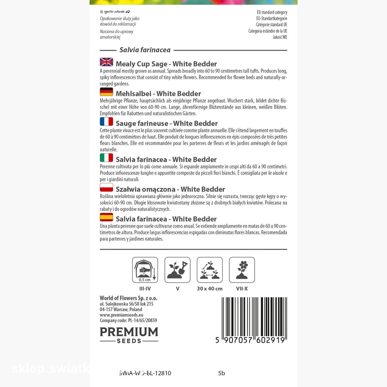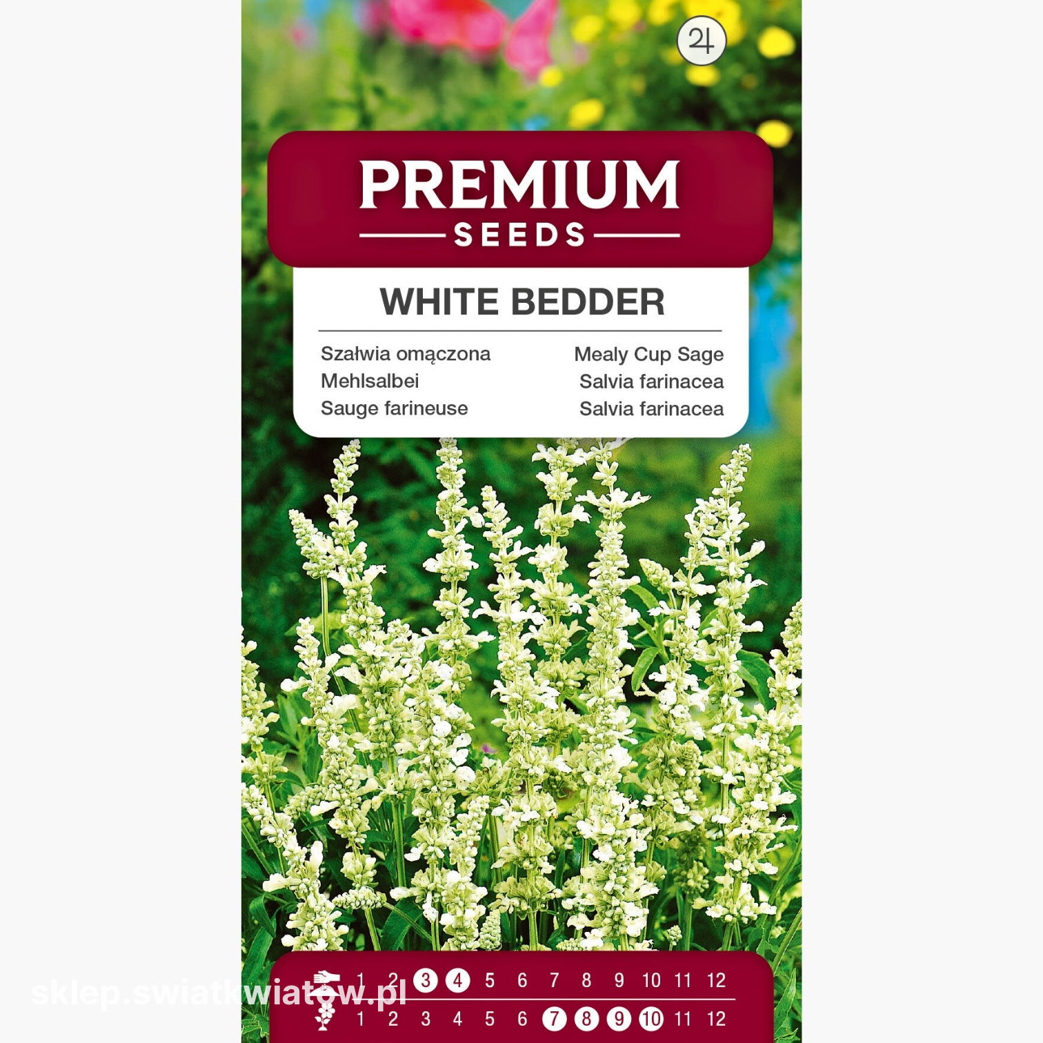 Szałwia omączona White Bedder zakwita już w lipcu i nieustannie cieszy oko aż do października. Jej kwitnienie trwa do pierwszych jesiennych przymrozków. Białe, puszyste kłosy są nie tylko ozdobą ogrodu, ale również znakomitym wabikiem dla pszczół i motyli. Dzięki temu roślina wspiera bioróżnorodność i wnosi do ogrodu życie oraz ruch.