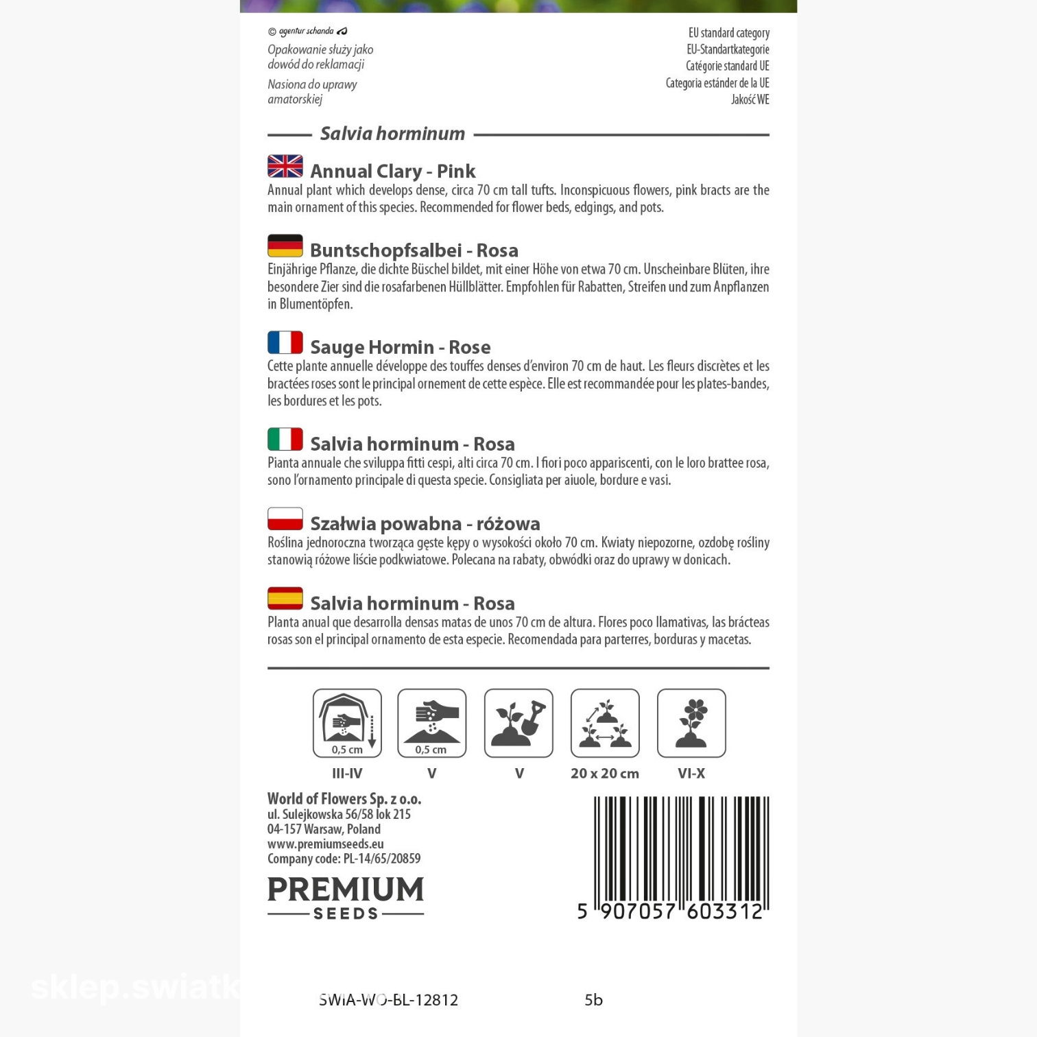 Opakowanie zawiera 0,5 g nasion. Na opakowaniu znajdziesz informacje o zasadach uprawy i terminie przydatności do wysiewu.
