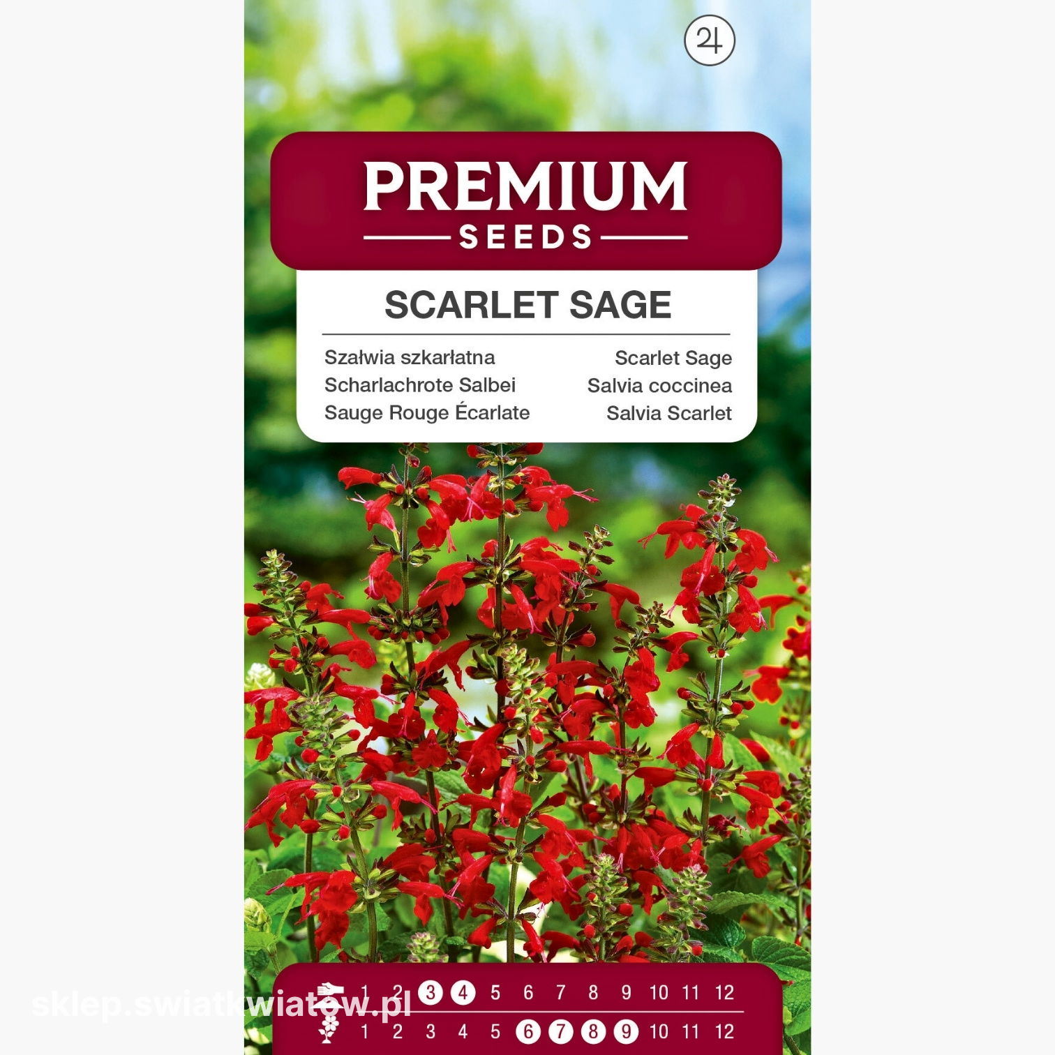 Szałwia szkarłatna to prawdziwa królowa letnich rabat - zachwyca intensywnie czerwonymi kwiatami, które tworzą długie, gęste kłosy unoszące się ponad zielenią liści. Jej niezwykle dekoracyjny wygląd sprawia, że natychmiast przyciąga wzrok i wprowadza do ogrodu energię oraz ciepło. Dorasta do ok. 60-70 cm wysokości, tworząc zwarte, rozkrzewione kępy, które doskonale prezentują się w grupowych nasadzeniach, na rabatach kwiatowych, w pojemnikach, a także w miejskich klombach. Choć w swoim naturalnym środowisku jest byliną, w naszym klimacie uprawia się ją jako roślinę jednoroczną. Obfite i długie kwitnienie od czerwca aż do pierwszych przymrozków sprawia, że stanowi niezawodny element letniego ogrodu.
