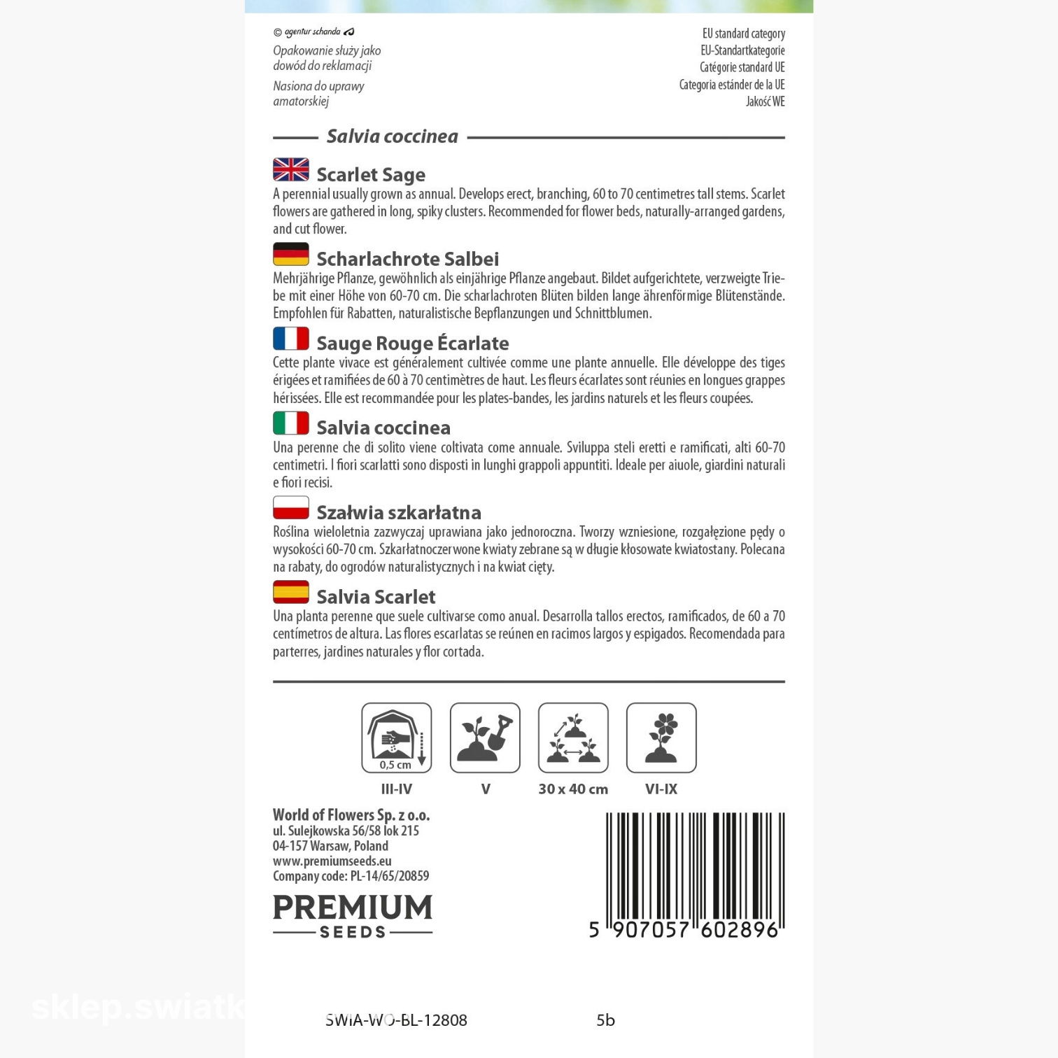 Opakowanie zawiera 0,3 g nasion. Na opakowaniu znajdziesz informacje o zasadach uprawy i terminie przydatności do wysiewu.