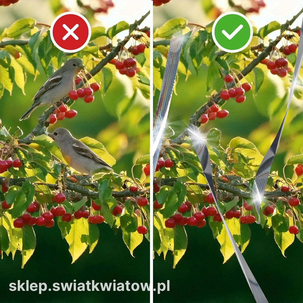 Taśma o długości 80 m daje duży zapas, który pozwala zabezpieczyć kilka miejsc jednocześnie i dopasować montaż do sytuacji w ogrodzie, sadzie albo na balkonie. Jeśli chcesz ograniczyć obecność ptaków bez stosowania chemii, ten produkt może być praktycznym elementem sezonowej ochrony.