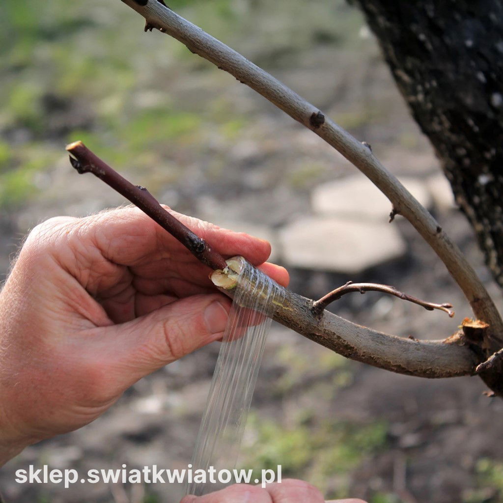 Po owinięciu taśma pomaga utrzymać elementy rośliny w odpowiednim ułożeniu. Jednocześnie osłania miejsce szczepienia lub uszkodzenia przed zabrudzeniami i nadmiernym zawilgoceniem. Takie zabezpieczenie jest szczególnie ważne wtedy, gdy roślina jest narażona na deszcz, wiatr lub przypadkowe otarcia podczas pielęgnacji.