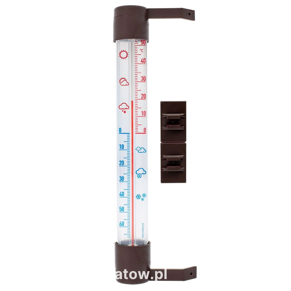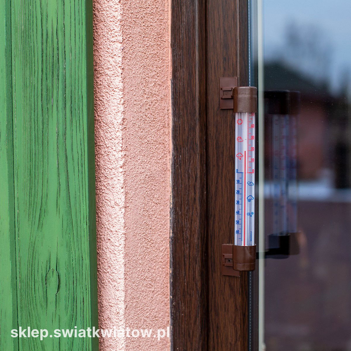 Termometr zewnętrzny brązowy z przezroczystą skalą do atrakcyjnej oferty urządzenia mierzącego ciepłotę ogrzewania. Prosty styl i obudowa w jednym kolorze dostępnym dla każdej pozycji. Dostępne metody termometrowi w szybkim i łatwym sposobie poznania temperatury na zewnątrz. Optymalny rozmiar sprawia, że skala jest czytelna, a jednocześnie termometr nie zwracany na siebie większe uwagi. Przezroczysta, plastikowa skala jest stworzona na działanie promieniowania słonecznego.