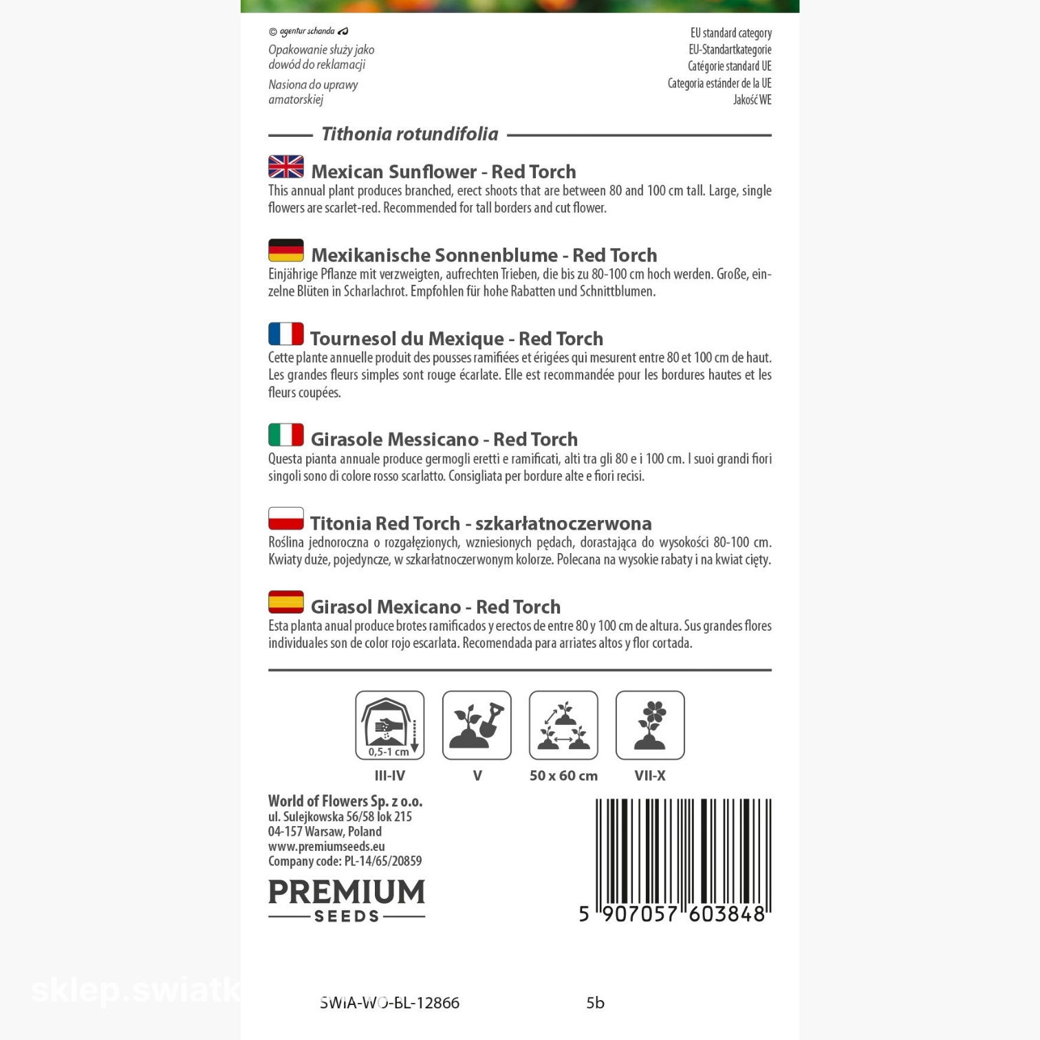 Titonia Red Torch, znana z intensywnie szkarłatnoczerwonych kwiatów, to roślina jednoroczna, która z pewnością przyciągnie wzrok w każdym ogrodzie. Jej wzniesione i rozgałęzione pędy dorastają do imponującej wysokości 80-100 cm, co sprawia, że jest idealnym wyborem na wysokie rabaty oraz jako kwiat cięty. Kwiaty tej odmiany są duże i pojedyncze, co dodaje im niezwykłego uroku. Uprawa titonii jest stosunkowo prosta, a jej kwitnienie trwa od lipca do października, co pozwala cieszyć się jej pięknem przez długi czas. Nasiona tej rośliny należy wysiewać pod osłonami wczesną wiosną, aby w maju móc przesadzić je na stałe miejsce w ogrodzie. Optymalna rozstawa wynosi 50x60 cm, co zapewnia roślinom odpowiednią przestrzeń do wzrostu i rozwoju. Wybierając Titonia Red Torch, można liczyć na spektakularny efekt wizualny i długotrwałe kwitnienie.