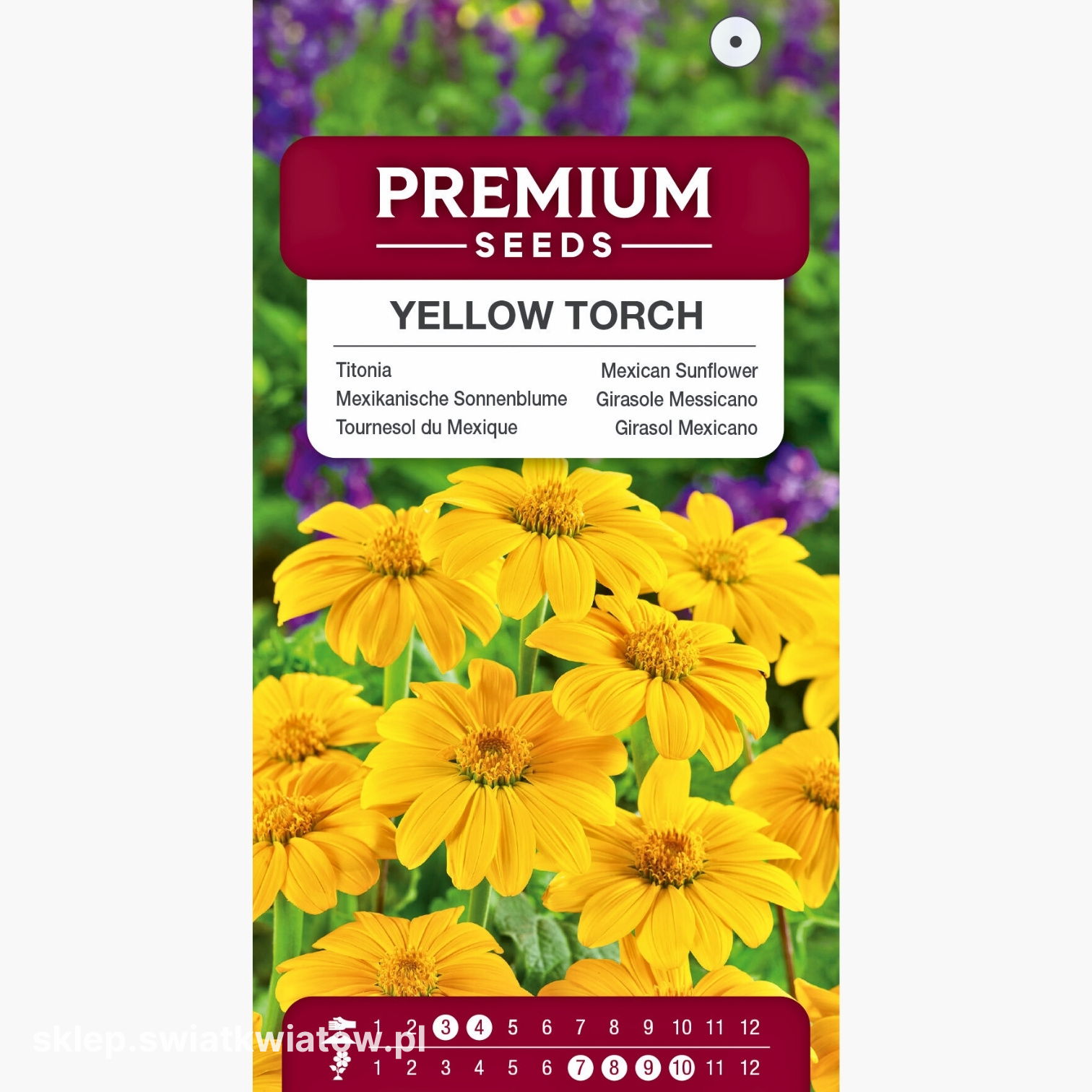 Titonia Yellow Torch osiąga wysokość od 80 do 100 cm, co czyni ją doskonałym wyborem na tło rabat kwiatowych. Jej imponujący wzrost sprawia, że jest widoczna z daleka, przyciągając wzrok swoim wyjątkowym kolorem.