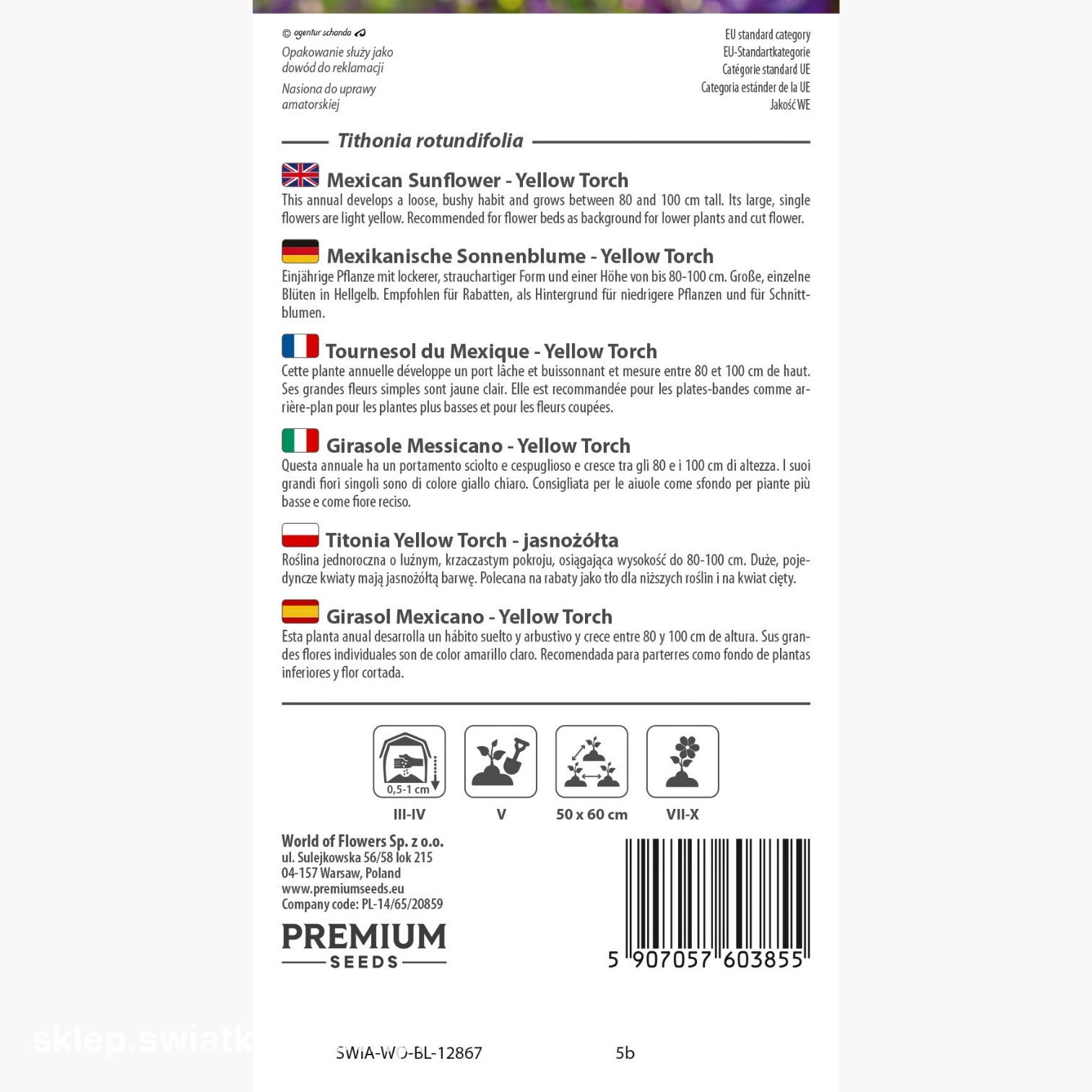 Titonia Yellow Torch to wyjątkowa roślina ozdobna, która przyciąga uwagę swoim krzaczastym pokrojem oraz jasnożółtymi, dużymi kwiatami. Doskonale sprawdza się jako element rabat, stanowiąc tło dla niższych roślin, a także jako kwiat cięty, który wnosi do wnętrz ciepło i radość. Roślina ta osiąga wysokość od 80 do 100 cm, co sprawia, że jest idealnym wyborem dla miłośników efektownych aranżacji ogrodowych. Wysoka jakość nasion zapewnia łatwość uprawy oraz satysfakcjonujące rezultaty.