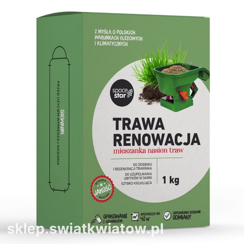 Trawa Renowacja marki Space Star to specjalistyczna kompozycja nasion, stworzona z myślą o skutecznym ratowaniu zniszczonych trawników w polskich warunkach klimatycznych. Mieszanka ta pozwala na błyskawiczne przywrócenie murawie gęstości i estetycznego wyglądu, eliminując puste place oraz przerzedzenia. Dzięki starannie wyselekcjonowanym odmianom trawa Renowacja wykazuje się ponadprzeciętną żywotnością, co czyni ją niezawodnym rozwiązaniem do zadań naprawczych w ogrodzie.