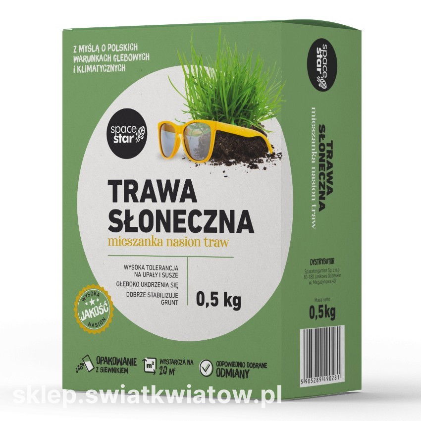 Trawa Słoneczna marki Space Star to specjalistyczna mieszanka nasion, skomponowana z myślą o polskich warunkach glebowych i klimatycznych. Produkt ten jest dedykowany na stanowiska mocno nasłonecznione, gdzie standardowe trawniki mogą ulegać przesuszeniu. Dzięki odpowiednio dobranym odmianom trawa ta wykazuje wysoką tolerancję na upały i susze, zachowując estetyczny wygląd nawet przy ograniczonym dostępie do wody.