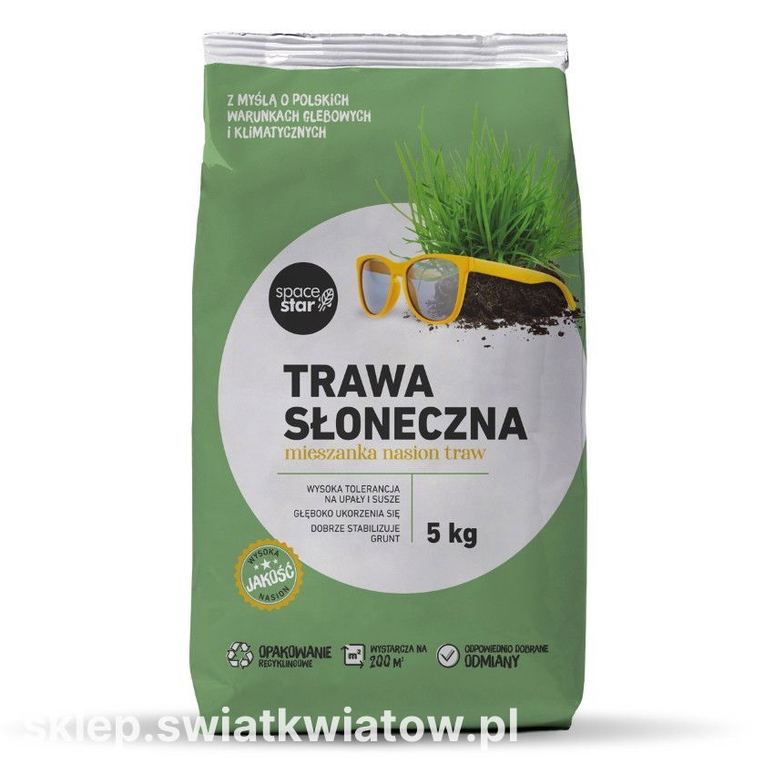 Trawa Słoneczna marki Space Star to specjalistyczna mieszanka nasion, opracowana z myślą o polskich warunkach glebowych i klimatycznych. Produkt ten stanowi idealne rozwiązanie na tereny mocno nasłonecznione, gdzie tradycyjne trawniki narażone są na szybkie wysychanie. Dzięki unikalnej kompozycji odmian, murawa wykazuje wysoką tolerancję na upały i susze, zachowując witalność i estetyczny wygląd w trudniejszych warunkach.