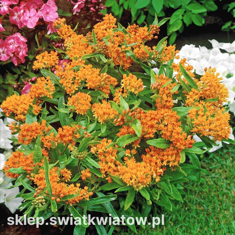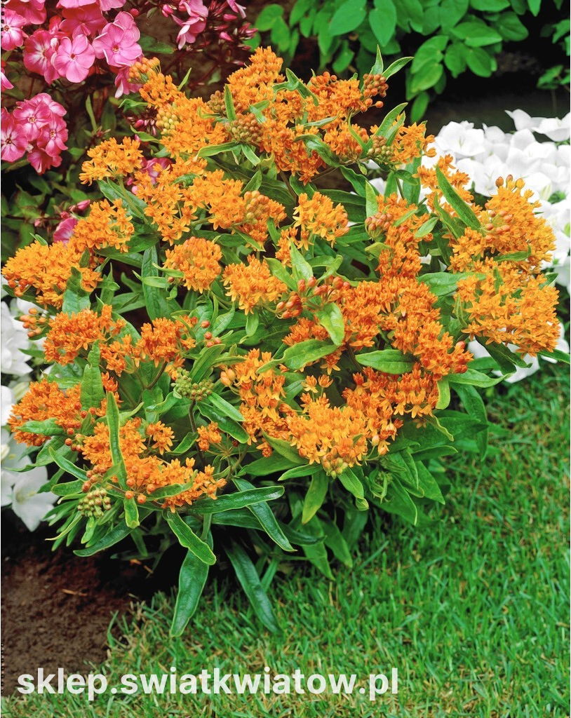 Trojeść bulwiasta - Tuberosa to zachwycająca bylina, sprawdzająca się na miejscach ciepłych i słonecznych. Ze zgrubiałych korzeni, wyrastają sztywne, przeważnie nierozgałęzione pędy zakończone baldachami kwiatów. Lancetowate liście są ułożone w mniej lub bardziej gęstych spiralach, wokół łodygi. Barwa kwiatów to jaskrawy pomarańcz, który nadaje roślinie fenomenalny urok. Pełnia kwitnienia przypada na okres od czerwca do sierpnia. Docelowa wysokość roślin to 60-90 cm. Trojeść bulwiasta jest roślina miododajną – obficie wydziela pokarm dla motyli, pszczół, trzmieli i innych owadów. Kiedy kwiaty zamierają, ich miejsce zajmują owoce, których środek wypełnia jedwabisty puch z nasionami.