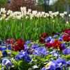 Zestaw zawiera 20 szt. tulipana białego White Wings oraz 2 opakowania nasion bratka wielkokwiatowego - mieszanki.