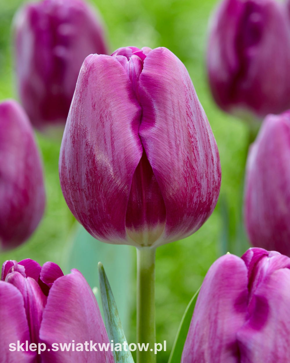 Tulipan Bullit zaliczany do rodzaju tulipanów Triumpha wydaje klasyczne, duże kwiaty. Śliczny różowy kolor ochłodzony odrobiną fioletu budzi zachwyt nad pomysłowością natury. Prezentowany tulipan Bullit to przykład perfekcyjnego połączenia koloru i formy. Mocne, dość krótkie (35-40 cm) łodygi dają dobre oparcie dla okazałych, pucharkowatych kwiatów, które pojawiają się w połowie tulipanowego sezonu. Ten urzekający, silny tulipan to zeszłoroczna nowość, zasługująca na miejsce w wielu kwiatowych kompozycjach. Bardzo ładnie łączy się z białymi hiacyntami czy intensywnie żółtymi narcyzami. Jest to dobra odmiana do sadzenia w pojemnikach i na obrzeżach trawników. Piękne, krzepkie tulipany Bullit najefektowniej wyglądają w większej grupie, która będzie stanowiła wyraźny akcent kolorystyczny ogrodu.
