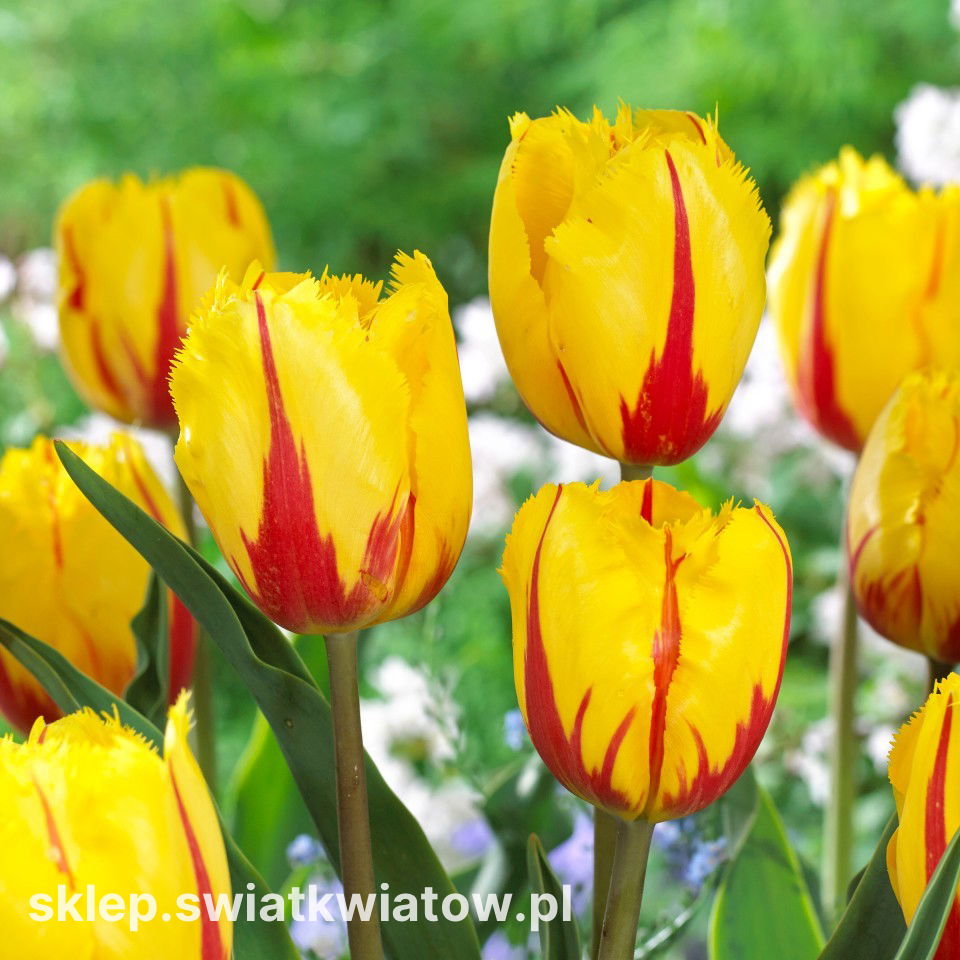 Tulipan ‘Flamenco’ to kwiat, który nie przejdzie niezauważony. Jego intensywnie żółto-czerwone, strzępiaste płatki wyglądają niczym płomienie wiosny - przyciągają wzrok i nadają każdej rabacie wyjątkowy charakter. To odmiana stworzona do tego, by zachwycać: energiczna, wyrazista i pełna ogrodowego temperamentu. Idealna do sadzenia w większych grupach, w pojemnikach, na klombach czy jako tło do kompozycji z innymi wiosennymi roślinami. Jeśli szukasz tulipana, który nada przestrzeni dynamicznego wyglądu i długo utrzyma efekt dekoracyjny - ‘Flamenco’ spełni wszystkie oczekiwania.