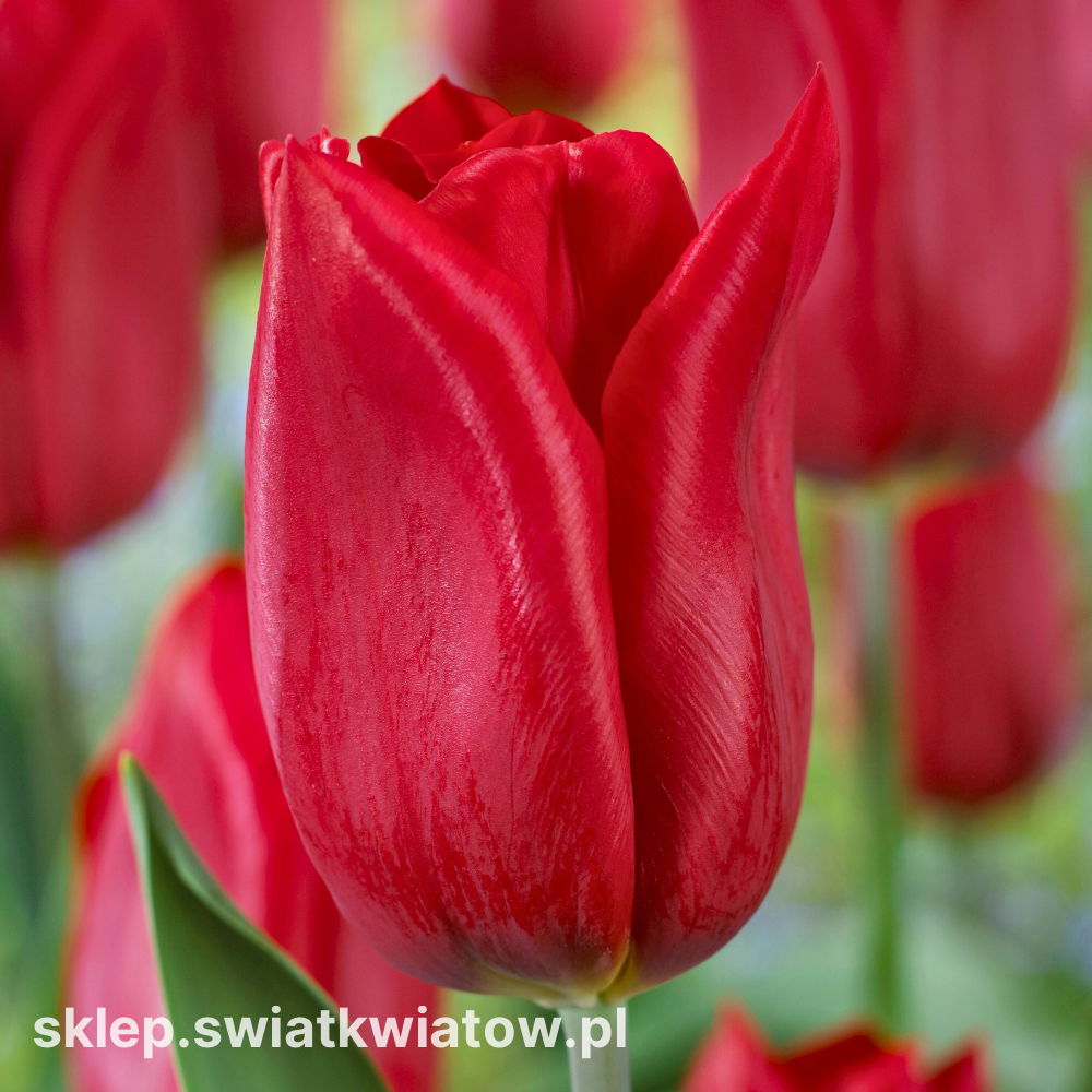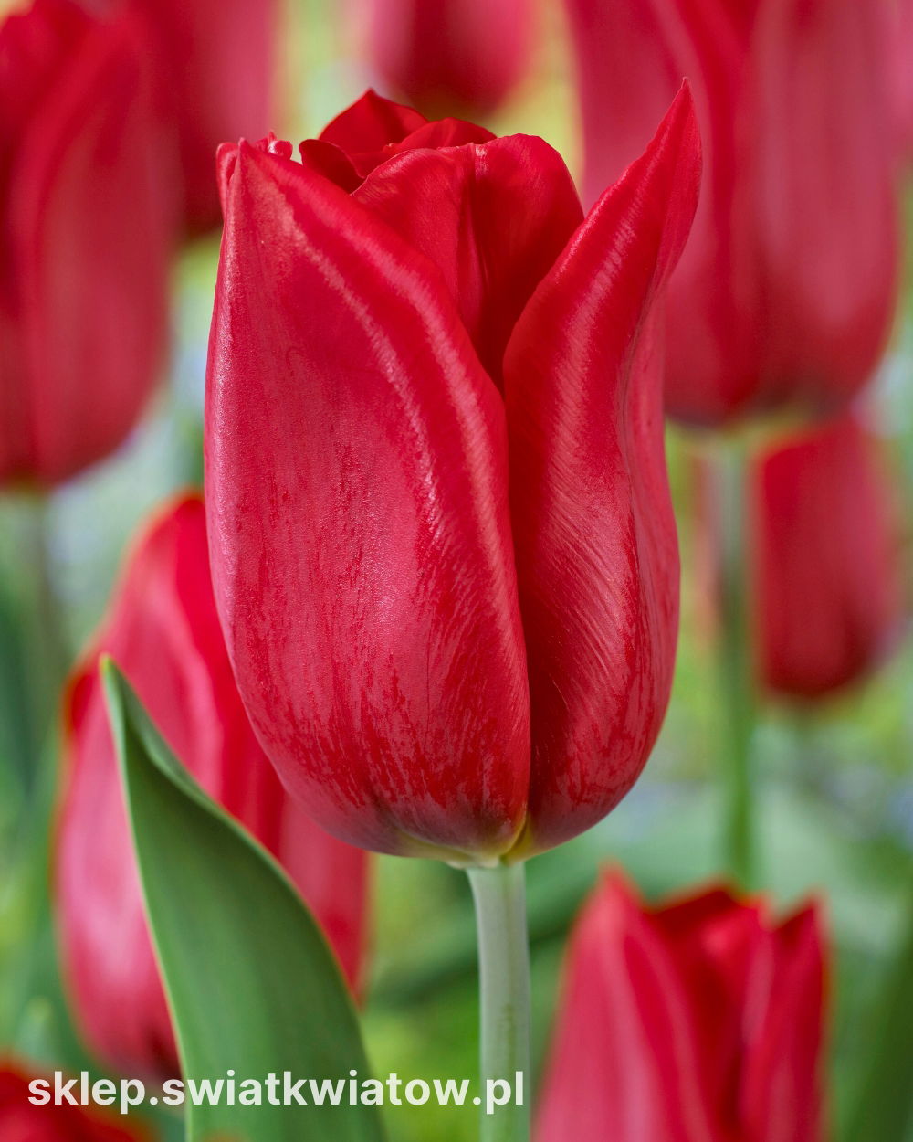 Tulipan Strong Love prezentuje elegancję i styl. Ten klasyczny tulipan Triumpha w intensywnie czerwonym kolorze, należy do ścisłej czołówki kwiatów ciętych. Obok żółci i niebieskiego, czerwień stanowi jedną z podstawowych, wiosennych barw. Strong Love to połączenie znakomitej, prostej formy pojedynczego tulipana z królewską barwą. Dorastający do 45 cm świetnie się sprawdza w przydomowych ogrodach, idealnie komponuje się w grupach na trawnikach i zieleni miejskiej. Mocno czerwone kwiaty o delikatnie malinowym odcieniu, pełen rozkwit przeżywają na przełomie kwietnia i maja. Tulipany Strong Love to propozycja dla ogrodników ceniących mocne rośliny, które można wykorzystać do zdobienia wnętrz.