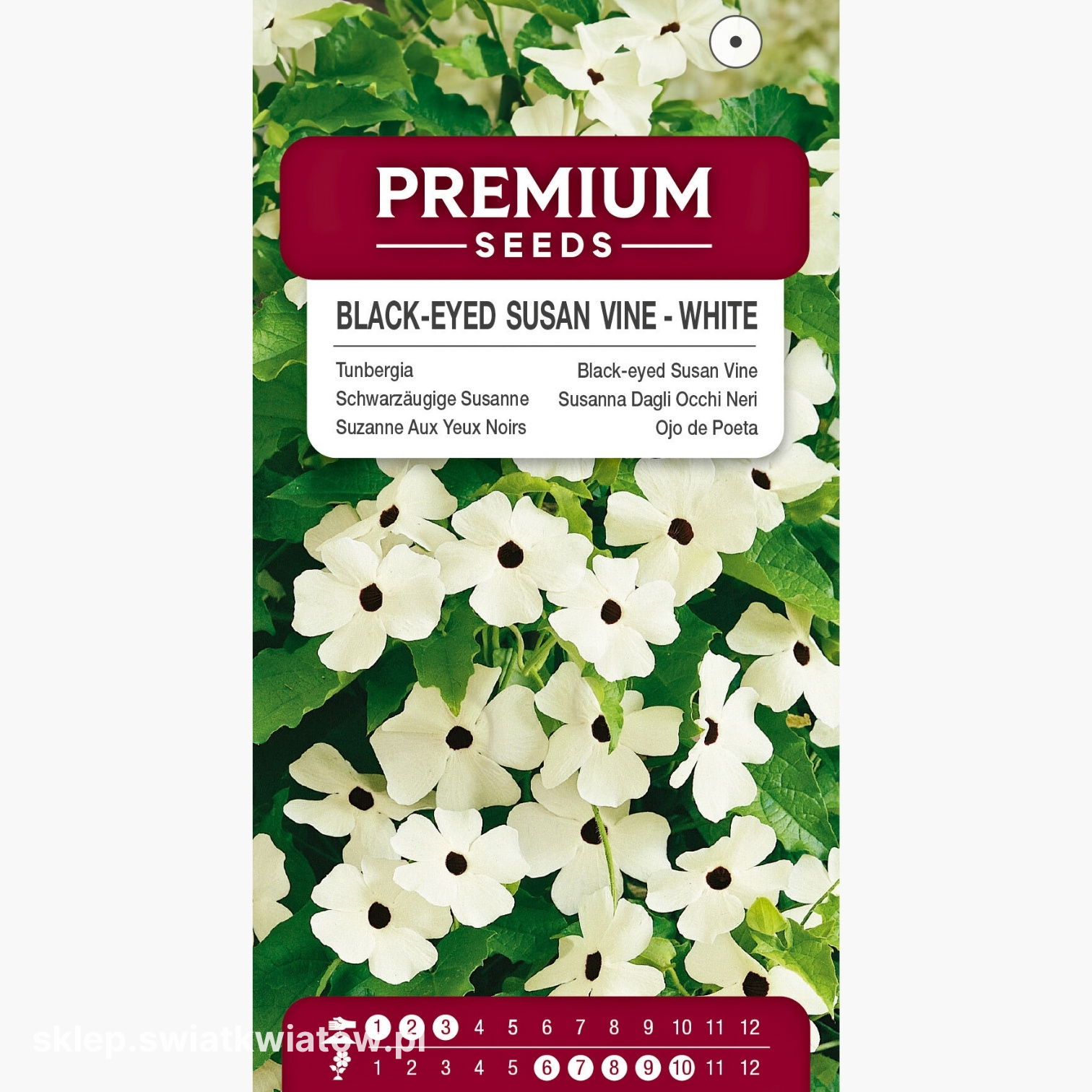 Opakowanie zawiera 0,5 g nasion tunbergii białej. Na opakowaniu znajdziesz informacje o zasadach uprawy i terminie przydatności do wysiewu.