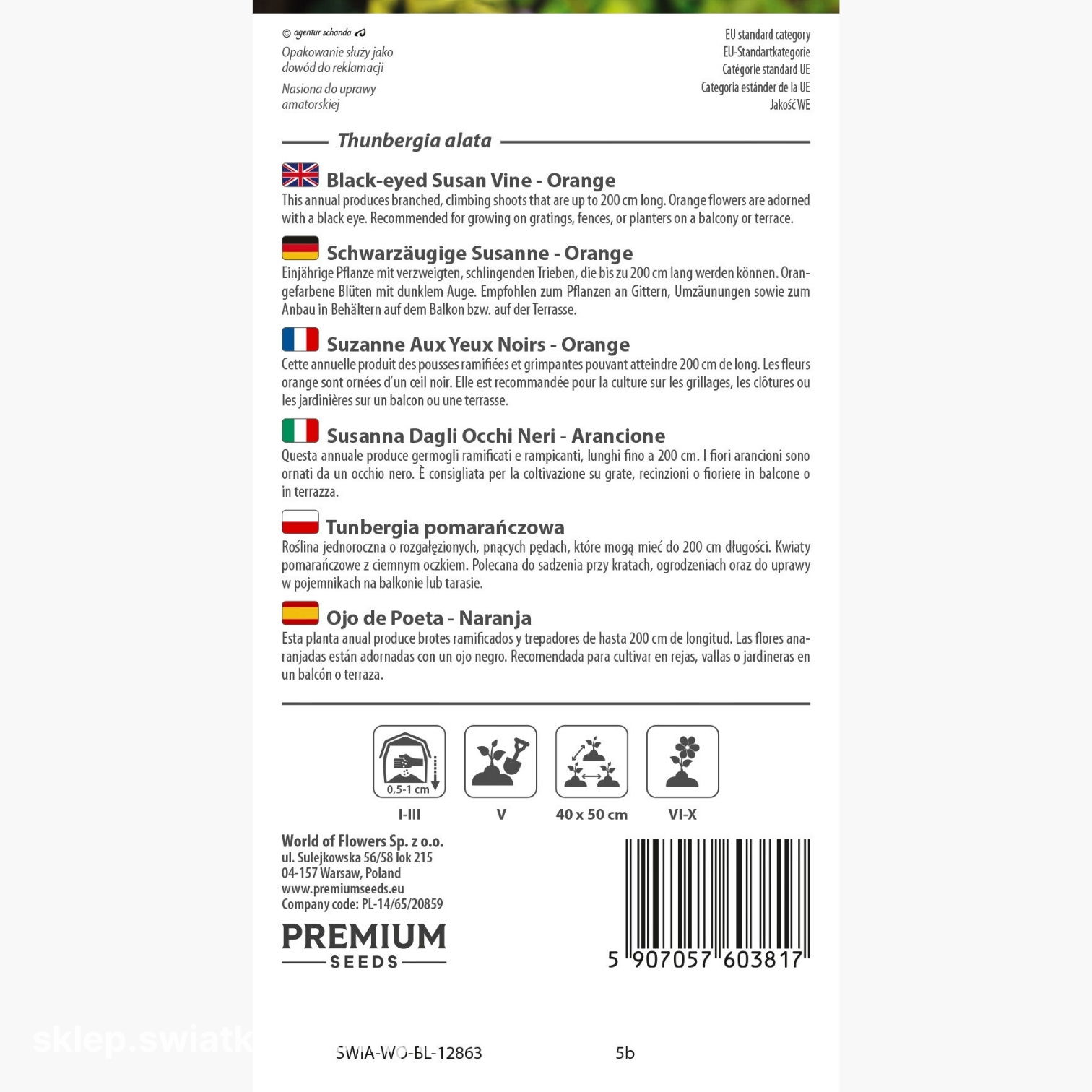 Wybierając nasiona w sklepie Świat Kwiatów, masz pewność najwyższej jakości. Każda partia nasion tunbergii przechodzi dokładną kontrolę, dzięki czemu charakteryzuje się wysoką zdolnością kiełkowania. Sklep dba o odpowiednie warunki przechowywania i szybką, bezpieczną wysyłkę, aby nasiona dotarły do Ciebie w idealnym stanie. Zespół doświadczonych doradców chętnie pomoże w wyborze roślin i doradzi, jak uzyskać najlepsze rezultaty uprawy. Zakupy w Świecie Kwiatów to gwarancja satysfakcji, jakości i prawdziwej pasji do ogrodnictwa.