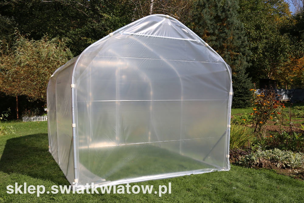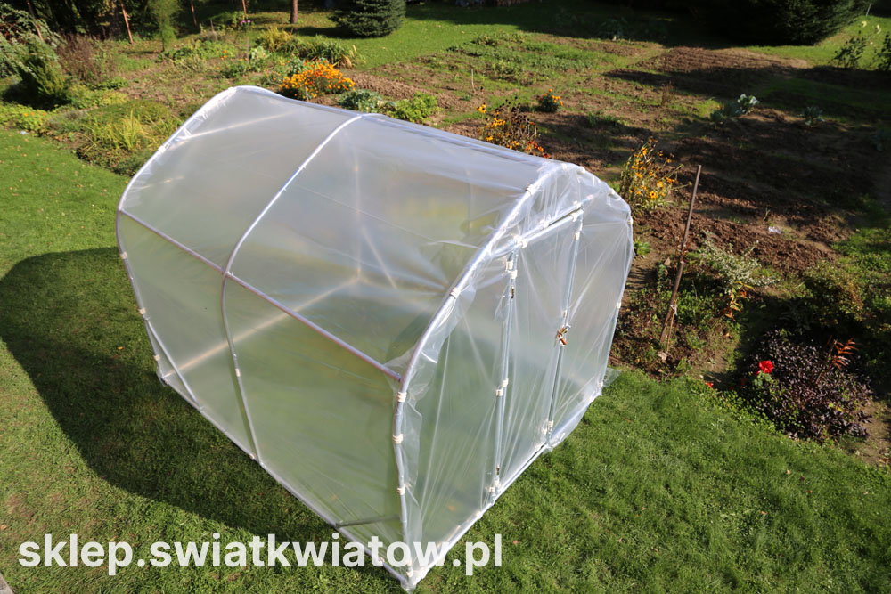 Tunel foliowy przeznaczony jest do upraw na działkach lub upraw przydomowych. Odporny na zmienne warunki pogodowe i skrajne temperatury, nie wymaga demontażu na zimę.