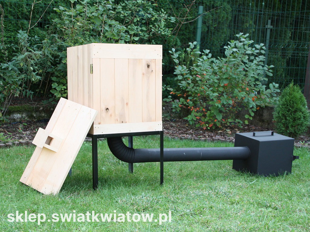 Oferta dotyczy wędzarni ogrodowej z olchy o komorze mającej wymiary 50 x 50 x 60 cm.