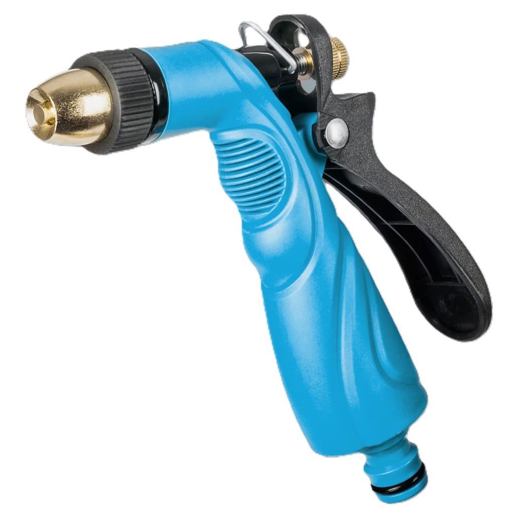 Zraszacz pistoletowy zwiększa efektywność prac w ogrodzie. Ergonomiczny kształt gwarantuje wygodę użytkowania przez długi czas.